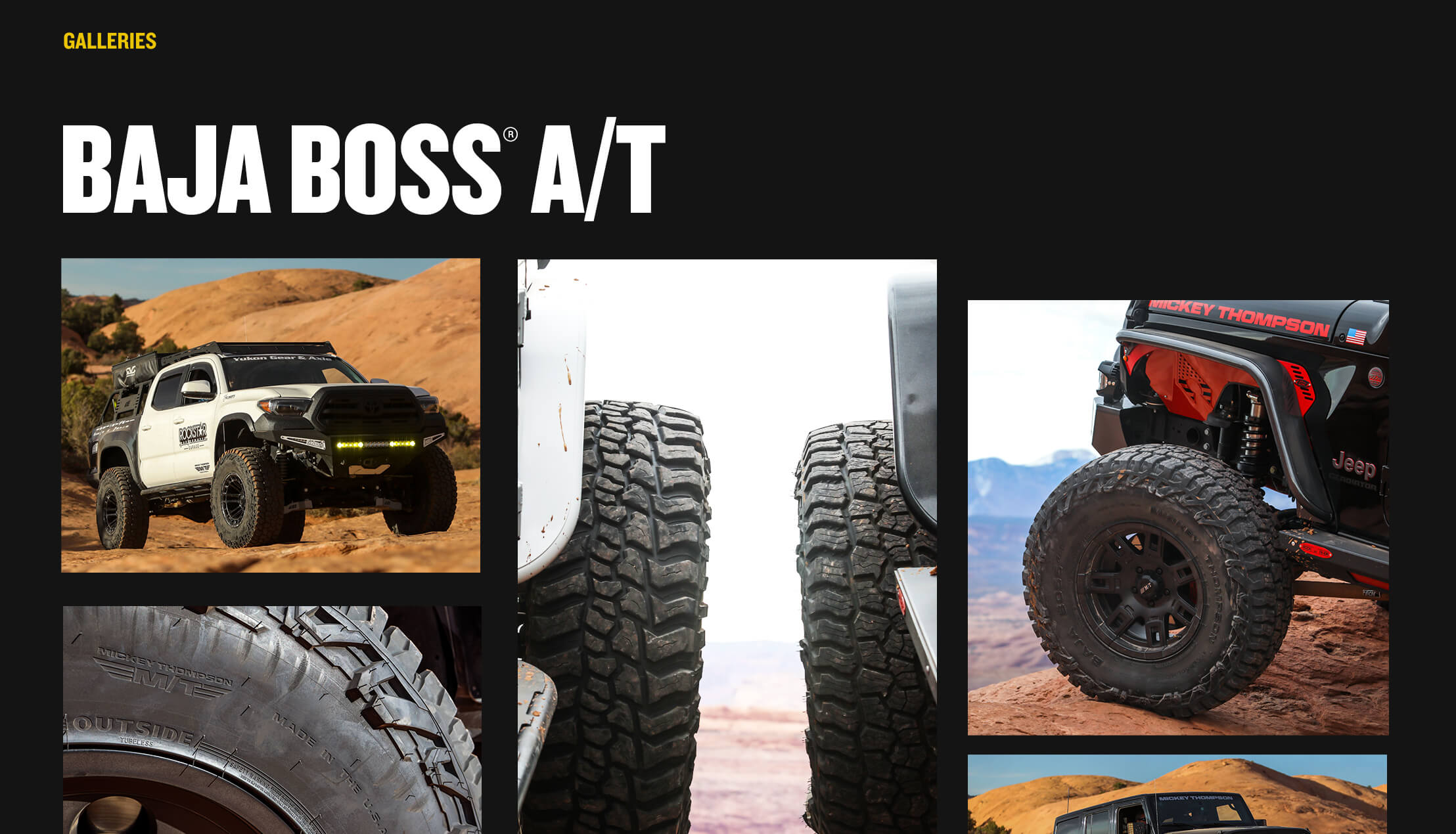The lineage of the BAJA ATZ P3™ & the BAJA BOSS® M/T has created a new breed of All-Terrain. Mickey Thompson Tires unapologetically introduces the BAJA BOSS® A/T. The most defiant All-Terrain tire to hit the American road. This new All-Terrain tire looks like your latest off-road adventure but is made for high mileage highway driving. It’s time to join the undisputed ranks, this All-Terrain is what you’ve been waiting for.